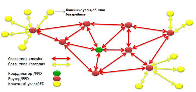 Теперь остановимся на структуре самой сети ZigBee и типах устройств, которые в ней могут быть.